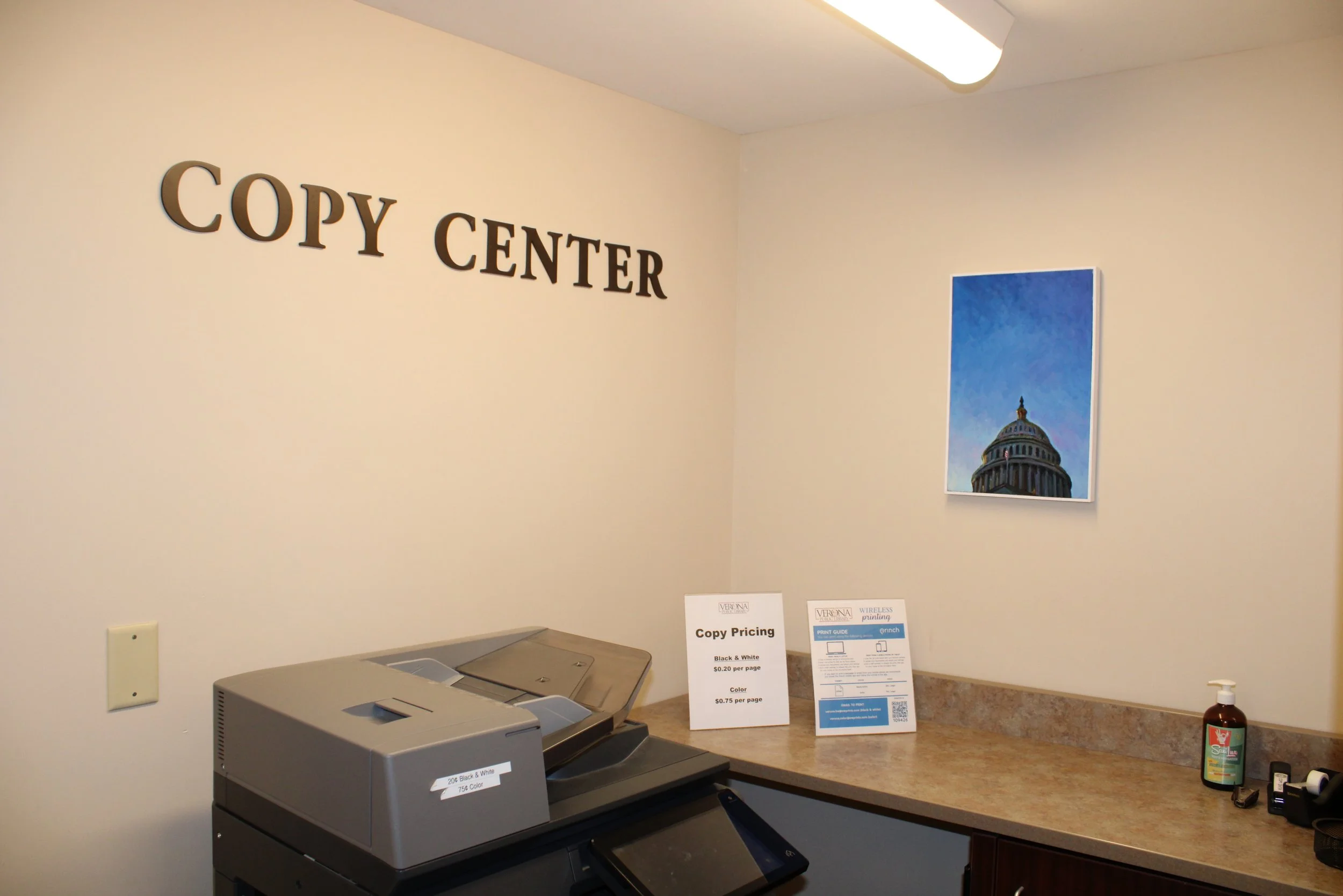 The painting in the Copy Center will change every month, each being the next in the Universe - The Capitol Series. As I type this, the painting has changed, but the photo here has not.